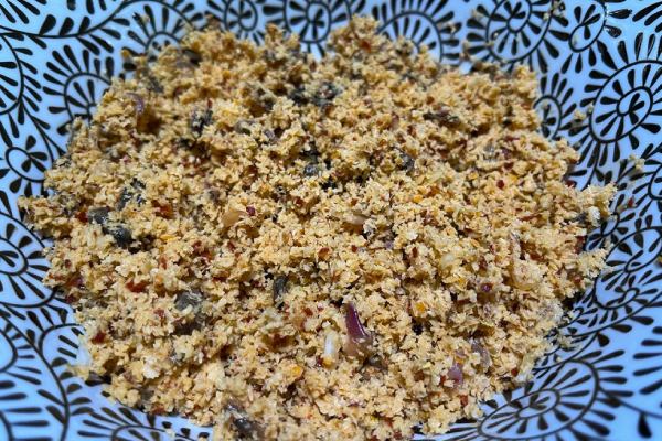 When you see steam rising from the bamboo, add the grains and close lid for few minutes.